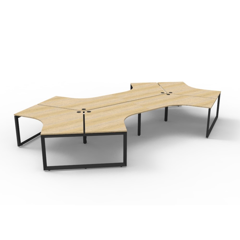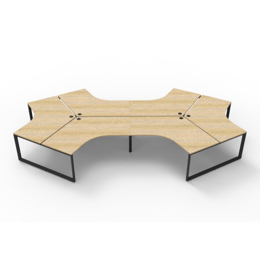 Overall Dimensions: 2866W x 2480D x 730mmH. Per User Dimensions: 1205W x 1205D x 730mmH. Natural oak worksurface with a 60 x 45mm powder coated black Loop leg underframe. 1 x 80mm diameter cable entry hole. 30mm cable access void in between double sided users. Infill rail available at additional cost. Dual cross bar for added stability. E0 enviroboard melamine worksurface. Adjustable leveling feet. 5 Year Manufacturer's Warranty. Delivery, installation and assembly charges may apply to furniture. Please enquire to confirm.