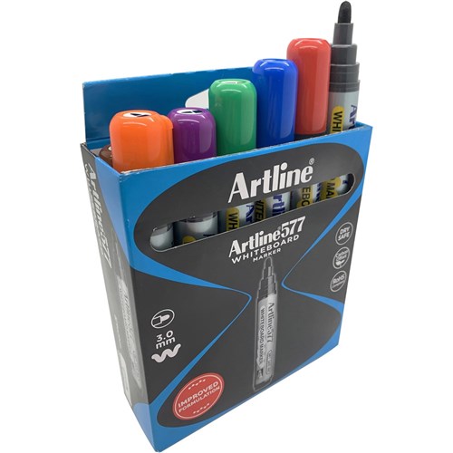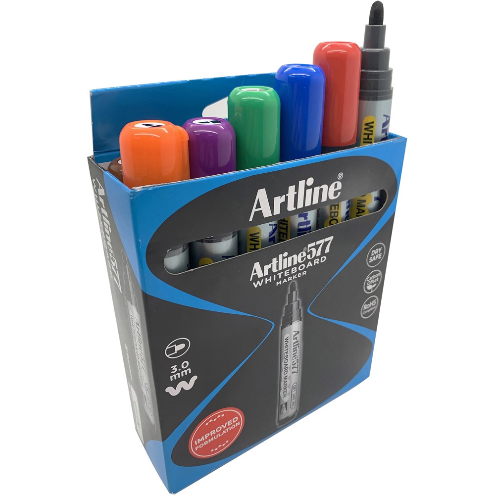 Artline 577 Whiteboard Markers Bullet 3mm 8 Assorted Colours Box Of 12