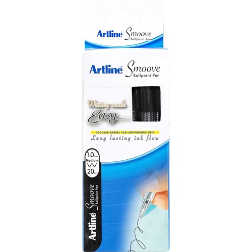 Artline 8210 Smoove Ballpoint Pen Medium 1mm Black Pack Of 20