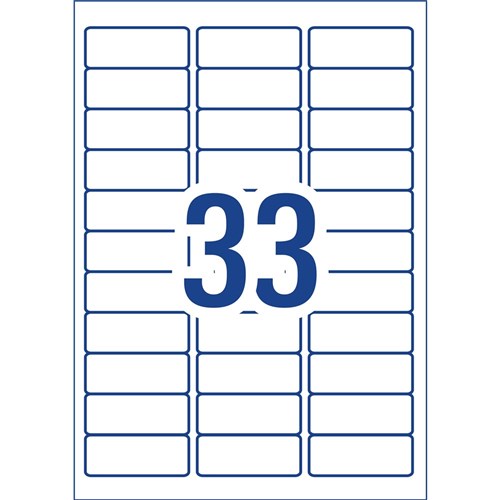 Smooth Feed Sheet Edges are suited for high speed printers. Jam-Freeâ„¢ reliability for trouble free printing, saving time and minimising wastage. Customise your labels with our free and easy-to-use template software; Avery Design and Print - available at averyproducts.com.au/print. Special adhesive withstands the high heat of laser printers. FSC certified labels made with paper from well-managed forests. Size: 64x24.3mm 3300 labels, 100 sheets. 33 labels per sheet (33UP).