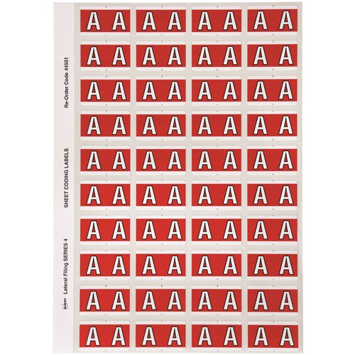 Avery Alphabet Coding Label A Side Tab 25x42mm Red Pack Of 240