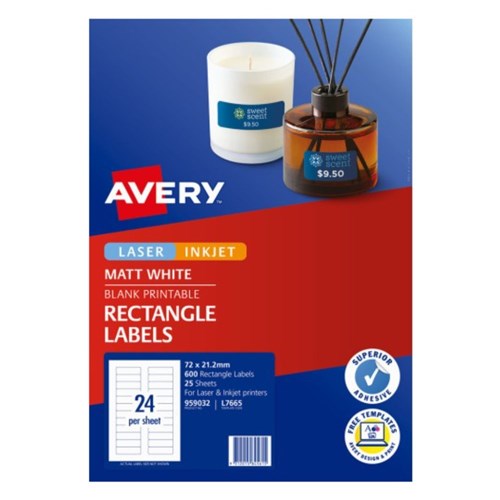 Avery Blank Printable Labels L7665 72 x 21.15mm Rectangle Matte White 24UP 600 Labels