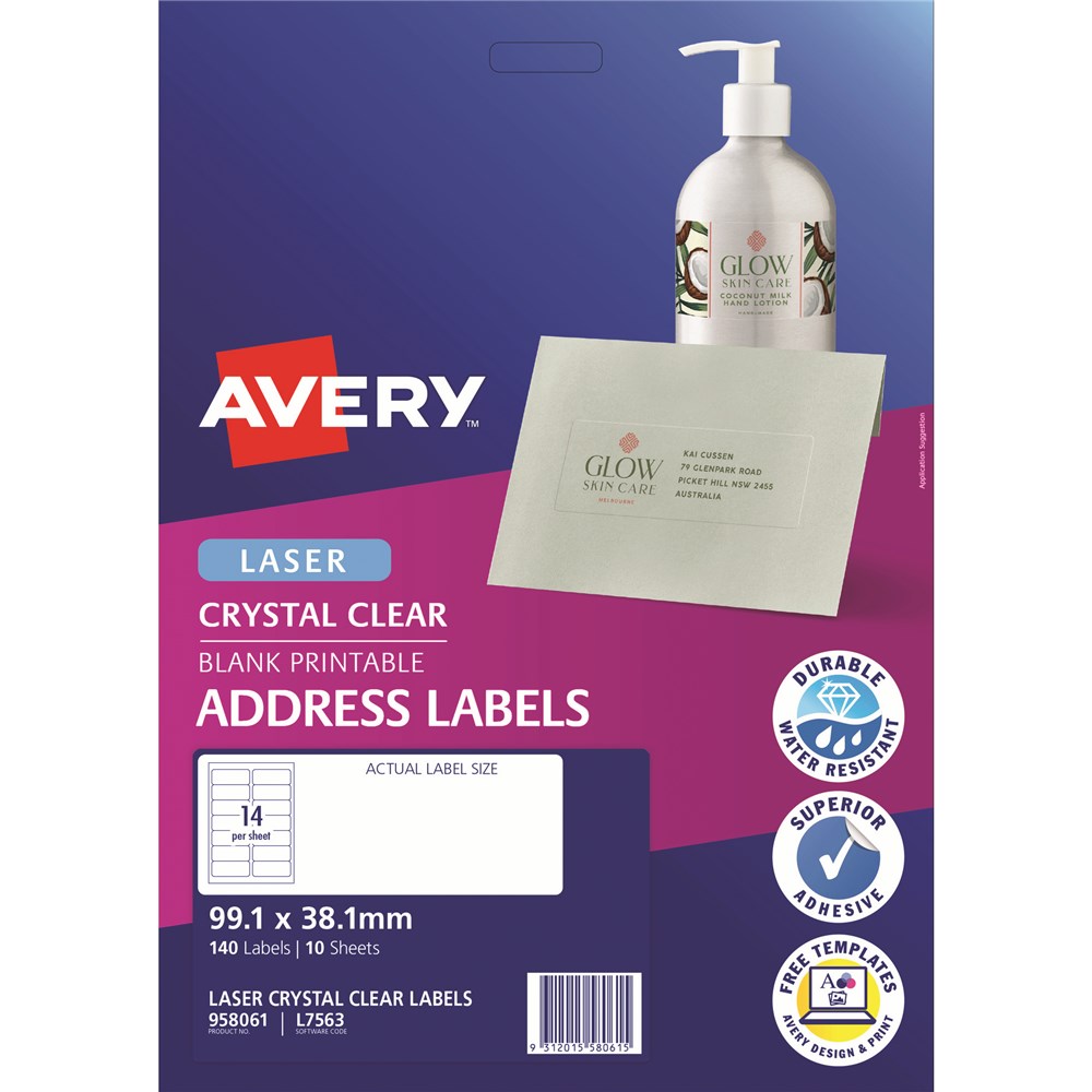 Avery Crystal Clear Laser Address Labels 99.1x38.1mm 14UP 140 Labels 10 Sheets