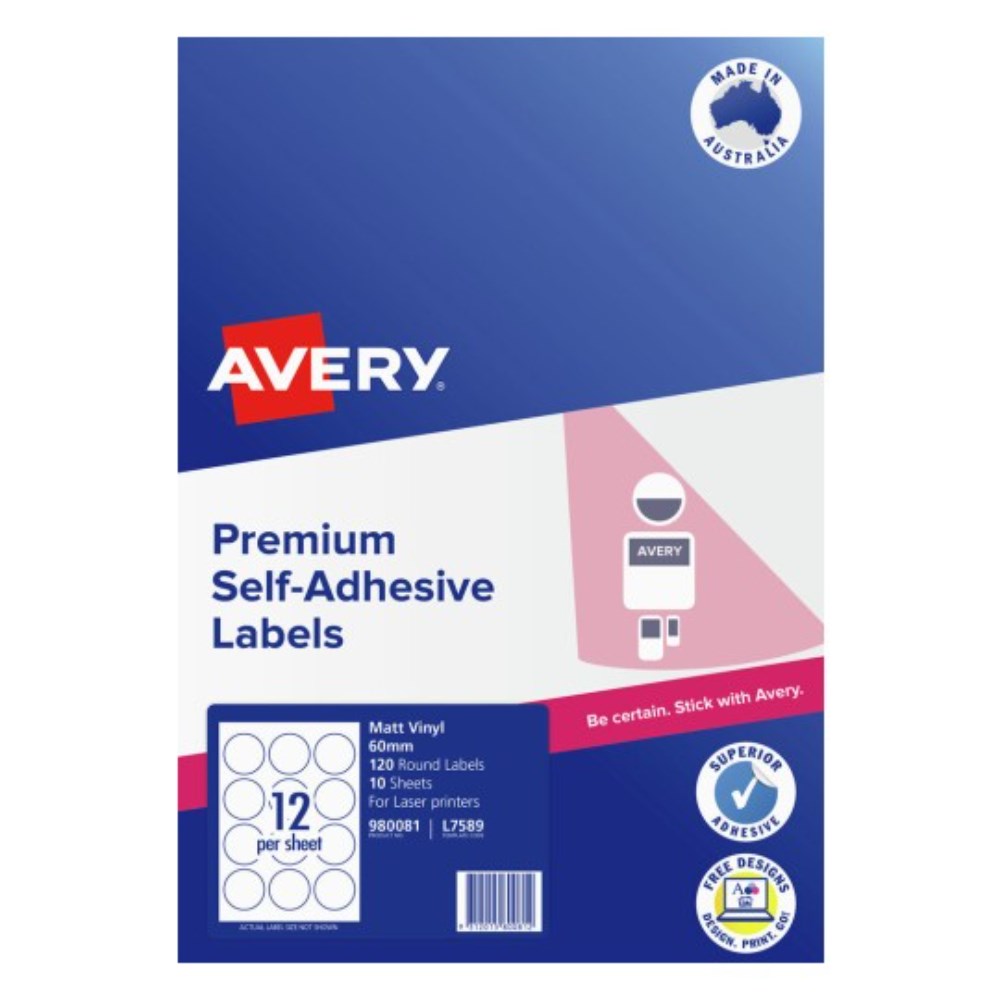 Avery Durable Blank Printable Labels L7589 60mm Round Matte White 12UP 120 Labels
