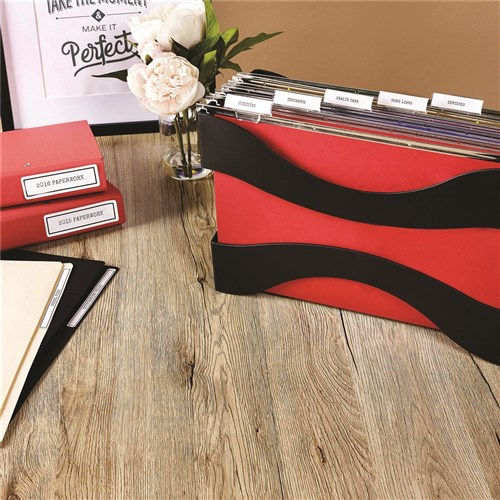 • Specially designed labels to fit the spine of lever arch, ring binders, elasticated folders, box files, suspension files, document wallets and square cut folders.