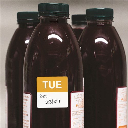 Visually identifies discard date of prepared food. Space to write the date on the label. Ideal for commercial refrigeration and food storage applications. Temperature -5 to +65C. Removable adhesive adheres to a variety of surfaces and removes easily.