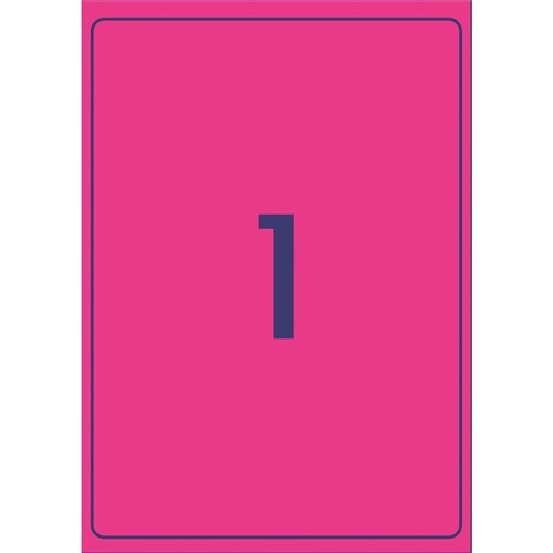 Ideal for labelling products, packaging and marking documents and files for urgent attention. Fluoro coloured labels make your items highly visible and enable instant recognition. Guaranteed Jam Free™ print. Customise your labels with Avery Design and Print, available at averyproducts.com.au/print. TrueBlock® technology, a sliver backing that covers up what's underneath. FSC certified labels made with paper from well-managed forests. Made in Australia. Size: 199.6x289.1mm 25 labels, 25 sheets. 1 label per sheet (1UP).