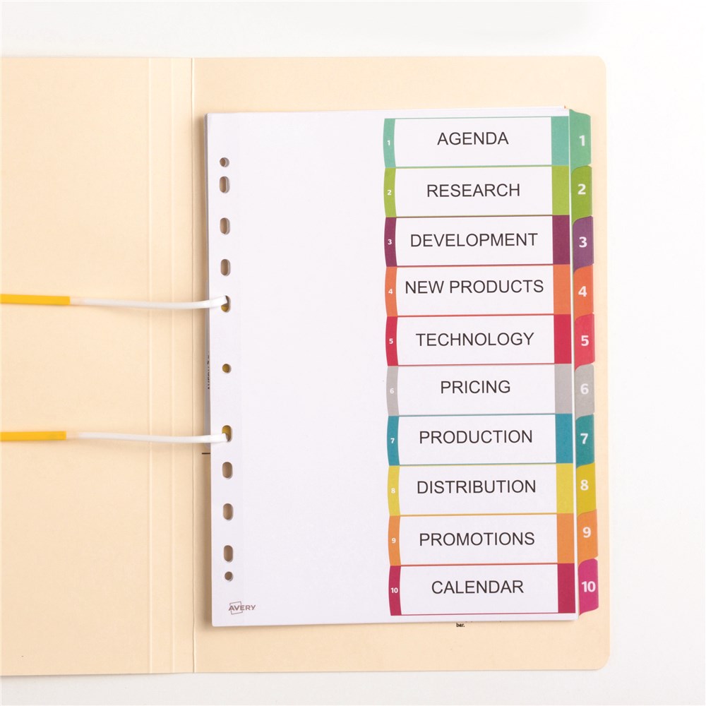 Avery L7411-10 Customisable Dividers A4 1-10 Index Tabs Bright Assorted