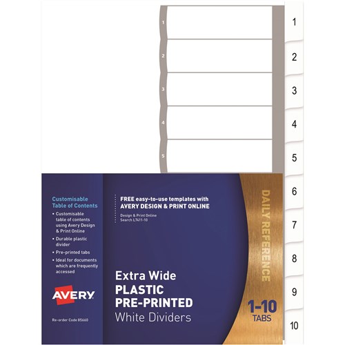 Avery L7411-10 Extra Wide Dividers Plastic A4 1-10 Index Tabs White
