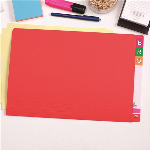 • Manufactured from strong weight board with a reinforced side tab on which you can label colour code and file title labels.