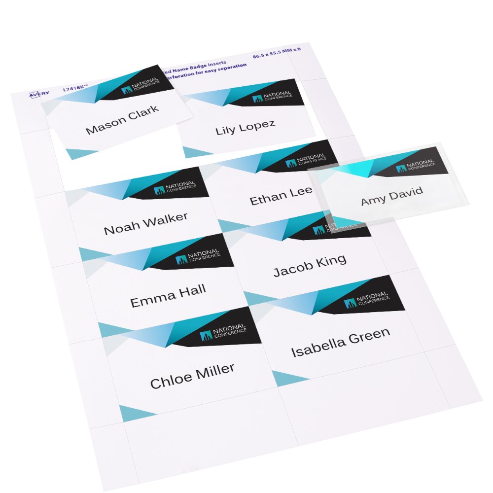 Kit contains 10 reusable magnetic badge holders, 2 sheets of 150gsm printable insert cards, each with 8 perforated name badges. Magnetic attachment allows for a strong and secure hold to your clothing. Ideal for seminars, meetings, trade fairs, conferencing and training sessions. Customise your labels with Avery Design and Print, available at averyproducts.com.au/print. Suitable for laser and inkjet printers and copiers. Size: 86.5 x 55.5mm, 2 sheets, 8 labels per sheet (8UP).