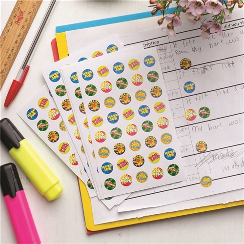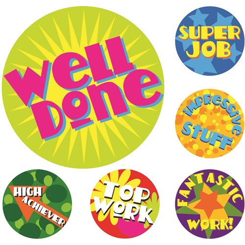 Mixed fun designs, to suit children of all ages. Perfect for teachers and parents rewarding children. Bright and colourful designs that will attract and inspire children to collect. Stickers stick onto most surfaces to reward children in any situation. Dimensions 14 mm diameter. Contents: 200 labels. Assorted Pack Of 6 mixed designs.