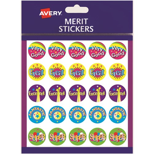 Avery Merit Stickers Multi Captions Round 22mm Assorted Colours Pack Of 200