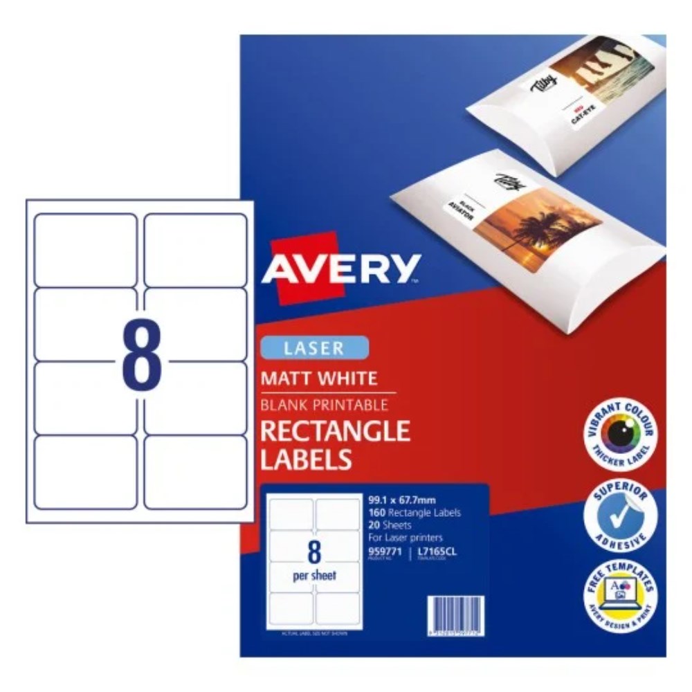 Avery Printable Labels L7165CL 99.1 x 67.7mm Rectangle Photo Matte White 8UP 160 Labels