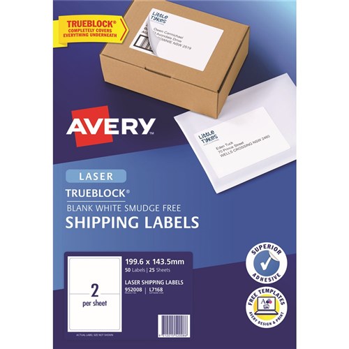 Avery Shipping Laser Labels White L7168 199.6x143.5mm 2UP 50 Labels 25 Sheets