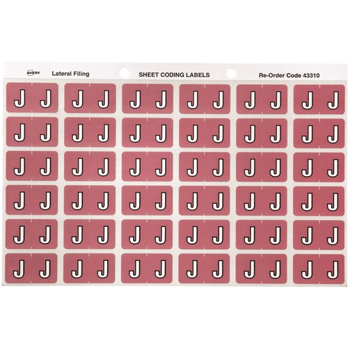 Avery Alphabet Coding Label J Side Tab 25x38mm Mauve Pack Of 180