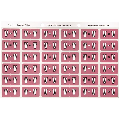 Avery Alphabet Coding Label V Side Tab 25x38mm Mauve Pack Of 180
