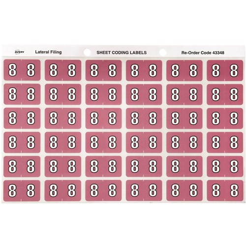 Avery Numeric Coding Label 8 Side Tab 25x38mm Mauve Pack Of 180