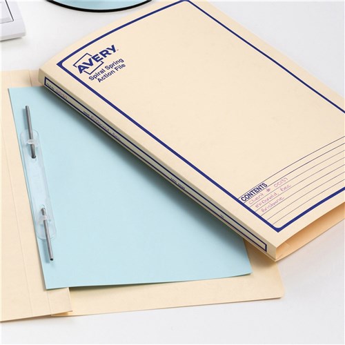 Avery Spiral Action File Foolscap Buff With Blue Print