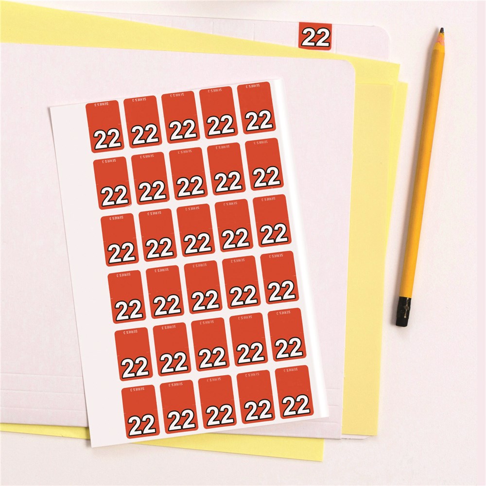 Easily identify files by using a colour coded year label. Apply to top tab of the file. Each year code is given a different colour for easy identification. Suitable for Quickvue or twin tab files.
