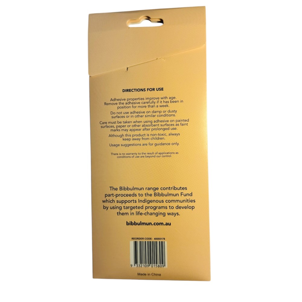 Reposition and reuse it multiple times without losing its adhesive quality, making it eco-friendly and cost-effective. Sticks to various surfaces like walls, glass, wood, or metal, perfect for home, office and school needs. Unlike nails or tape, it doesn't leave residue, scratches, or holes on surfaces, making it ideal for renters or those who prioritise surface care. It requires no tools, making it accessible for all age groups, even kids. Convenient to carry and store, perfect for on-the-go projects. Suitable for use around children and pets. The Bibbulmun range contributes part proceeds to The Bibbulmun Fund which supports indigenous communities by using targeted programs to develop them in life-changing ways.