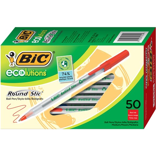 Bic Ecolutions Ballpoint Pen Round Stic Medium Red Box of 50