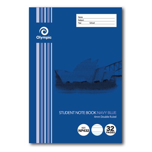 Olympic Notebook Student NSW 250x175mm 4mm Double Ruled 32 Page Navy Blue NP432