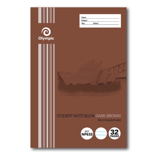 Olympic Notebook Student NSW 250x175mm 6mm Double Ruled 32 Page Dark Brown NP632