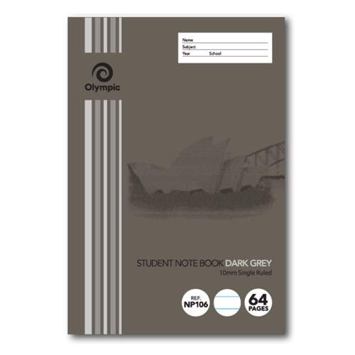 Olympic Grid Notebook 250x175mm 10mm 64 Page NSW Student Dark Grey NP106