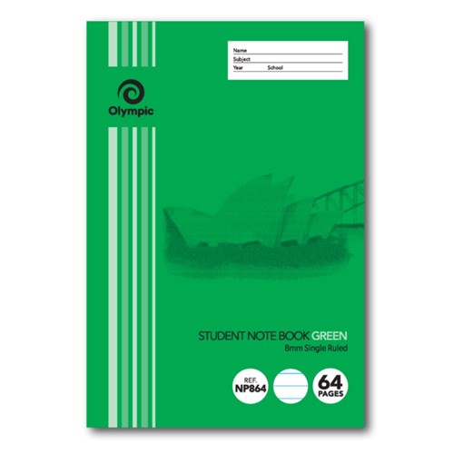Olympic Grid Notebook 250x175mm 8mm 64 Page NSW Student Green NP864