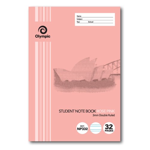 Olympic Notebook Student NSW 250x175mm 3mm Double Ruled 32 Page Rose Pink NP332
