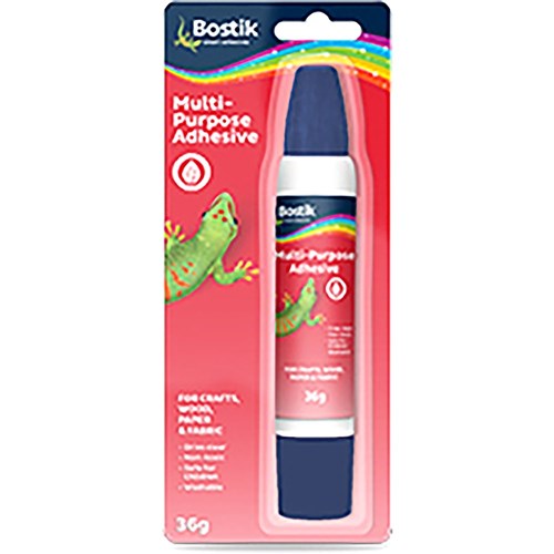 Versatile water based adhesive Bostik Multi Purpose adhesive is a versatile water based adhesive that dries clear. Non-toxic, solvent free, safe for children and washable. Features a twin application for those precise and broad surface areas. Ideal for schools projects, paper craft activities and household projects. Bonds best with wood, fabric and paper products.