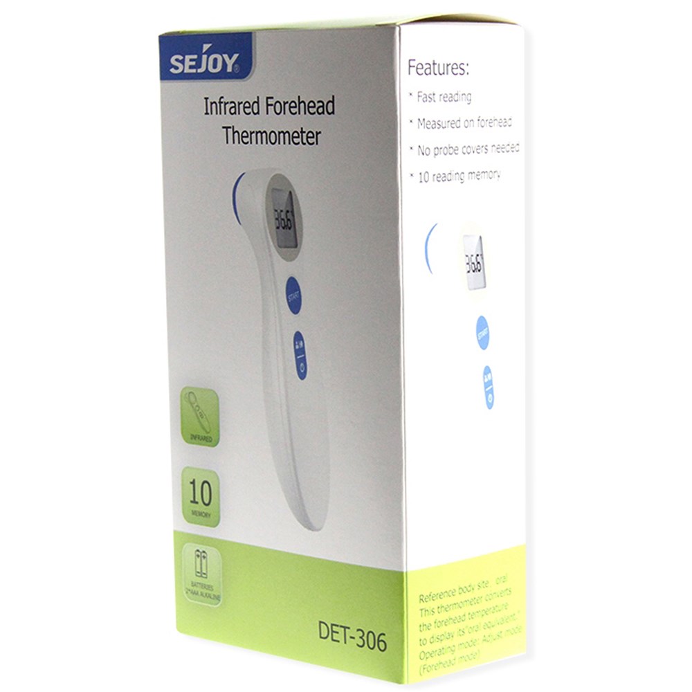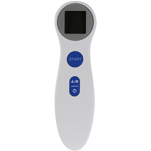 Non-contact, fast reading. 2 x AAA batteries included. Temperature is taken from the forehead. No probe covers needed. Up to 10 reading memory. The thermometer must be held 2-3 cm from the forehead for most accurate results. Dimensions: 153 x 41 x 44mm. Battery life: Approx 1 year / 6000 readings.