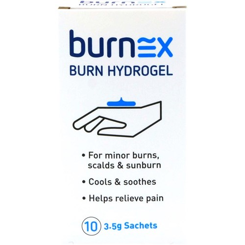Burnex burn hydrogel is first aid burn treatment and can be used for minor burns, scalds and sunburn. Cools, soothes and helps relieve pain. Water soluble transparent hydrogel that does not disguise the extent of the burn, and can be readily rinsed off should further treatment be necessary. Helps prevent contamination. Off white/translucent gel impregnated into a white foam. Pack of 10 x 3.5g sachets. Health Warning: Always read the label and follow the directions for use. Warning: For first aid treatment of burns up to 2 hours. Seek medical attention if burn is severe or covers a large area. Do not use if pouch is damaged. For severe burns seek medical attention. Store below 30 degrees Celsius.