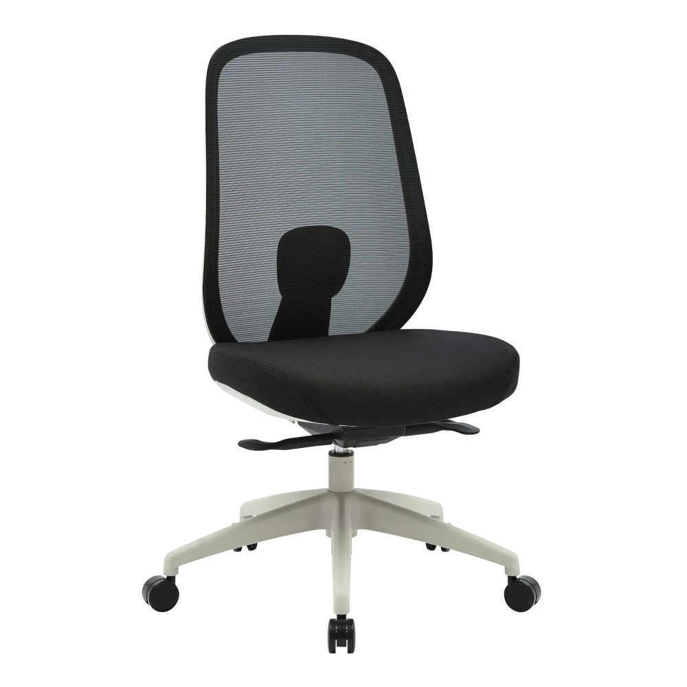 • High Back Office Chair With Seat Slide. Light Grey Frame Black Fabric Seat Mesh Back.