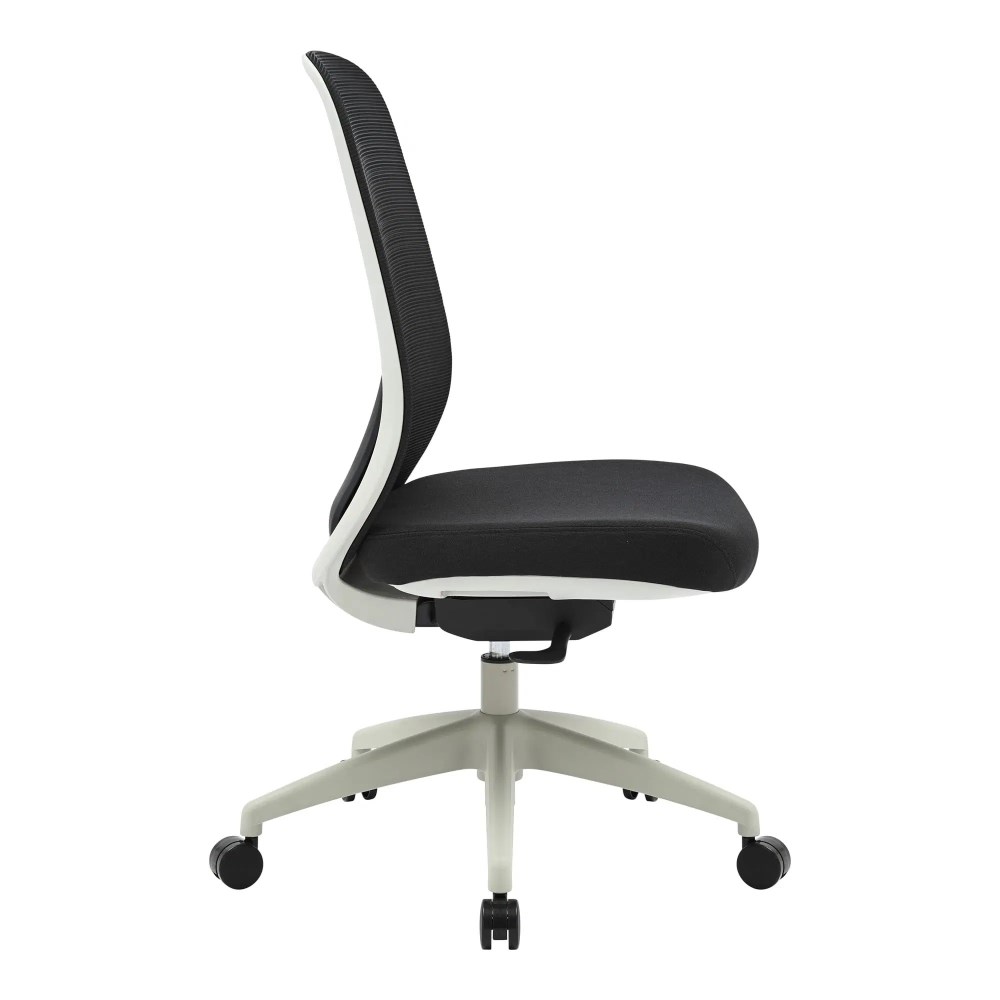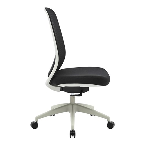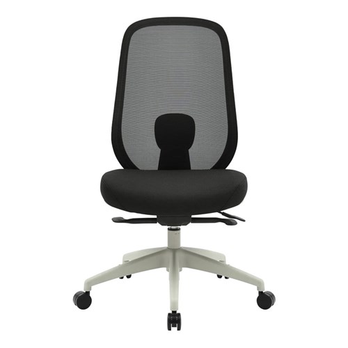 High Back Office Chair With Seat Slide. Light Grey Frame Black Fabric Seat Mesh Back. Weight Rating: 130kg. Indicated seat hours: 8+ hours. Seat Dimensions: 485W x 455D x 535mmH. Back Height: 565mm. Back Width: 485mm. Synchronised adjustable seat and back rest angle. Depth adjustable seat slide. Nylon base on castors. 600mm. FSC certified. GreenGuard Gold. Optional height and width adjustable armrests available. 10 Year Manufacturer's Warranty. Delivery, installation and assembly charges may apply to furniture. Please enquire to confirm.