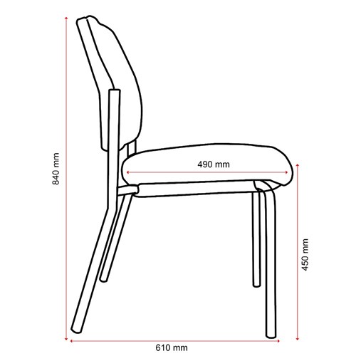 Chair Capacity: 130kg. Composition: Black PU seat and back, black powder coated frame. Seat Width: 470mm. Seat Depth: 490mm. Back Height: 390mm. Seat Height: 450mm. Indicative Seating Time: 6-8 hours. Stackable. 10 Year Manufacturer's Warranty. Delivery, installation and assembly charges may apply to furniture. Please enquire to confirm.