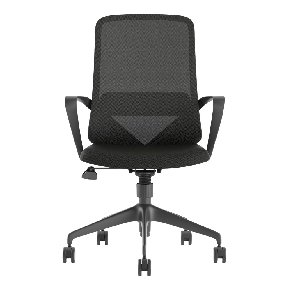 Chair Capacity: 120Kg. Composition: Mesh back with lumbar support, upholstered seat and strong nylon 5 star base with 60mm nylon castors. Fixed looped armrests. Seat Width: 500mm. Seat Depth: 490mm. Back Height: 615mm. Gas lift height adjustment. Indicative Seating Time: 4 - 6 Hours. Meets ANSI/BIFMA X5.1-2017 General-Purpose Office Chairs. 6 Year Manufacturer's Warranty. Delivery, installation and assembly charges may apply to furniture. Please enquire to confirm.