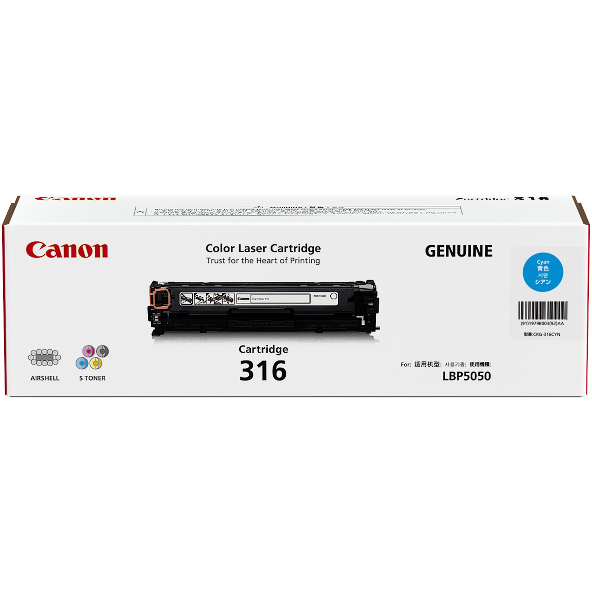 Compatible with: LBP5050N. It will yield approximately 1500 pages. This pack contains 1 cyan toner cartridge.