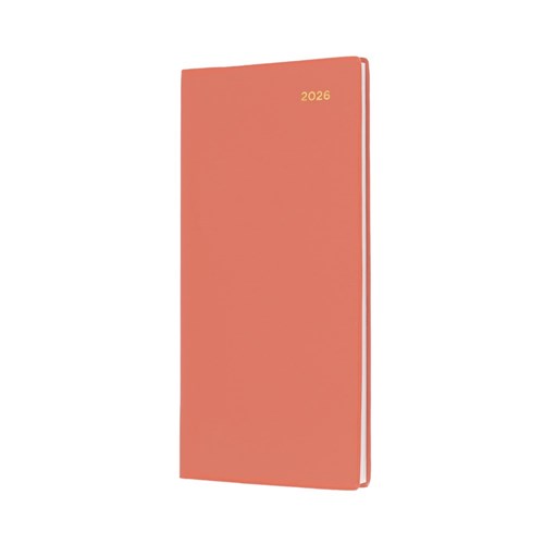 Bound in durable, welded PVC, and printed on white paper. Lay flat opening week to view layout - Portrait. 3 year calendars. Current and forward year planners. Calendar notes. Soft flexible covers making them east to fit into a bag or pocket. Size: 176 x 88mm. FSC Certified.