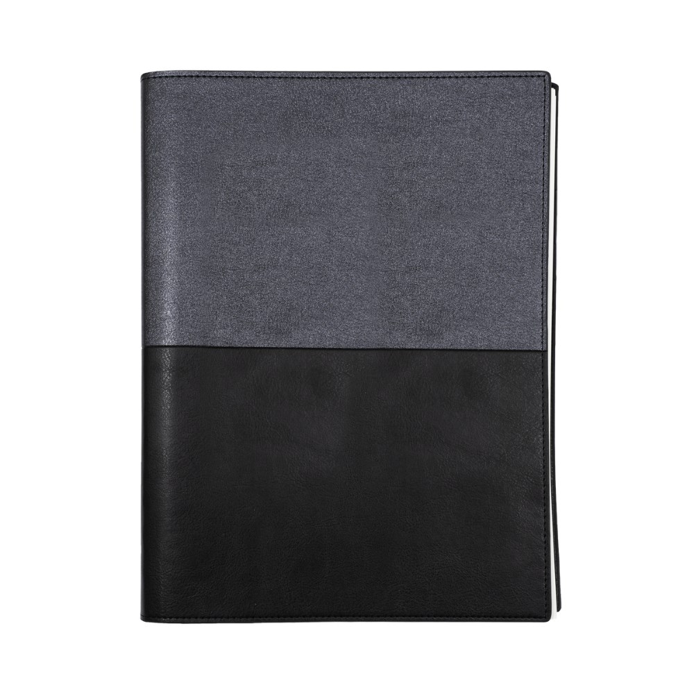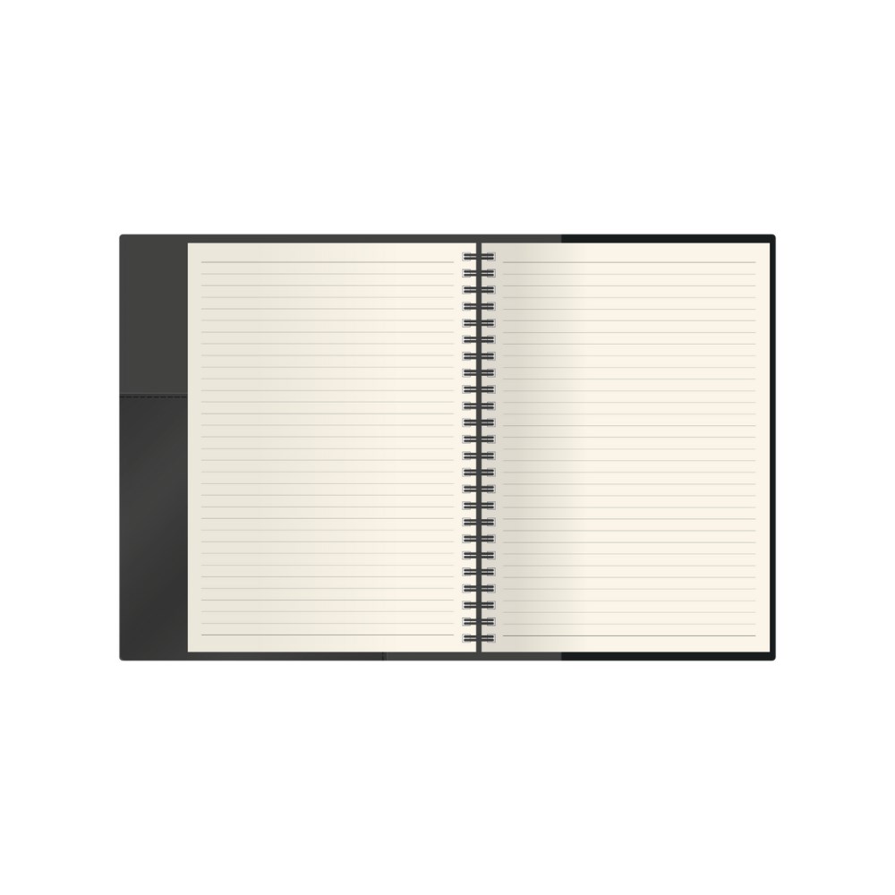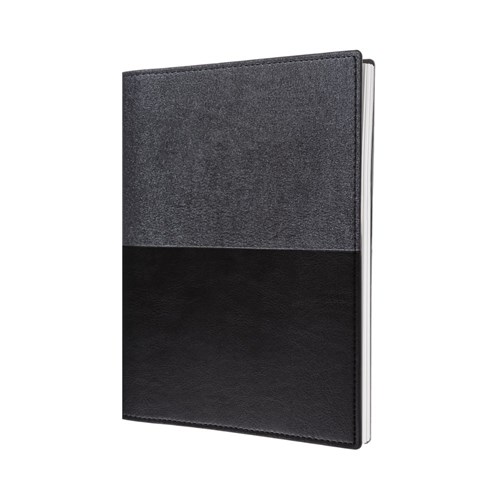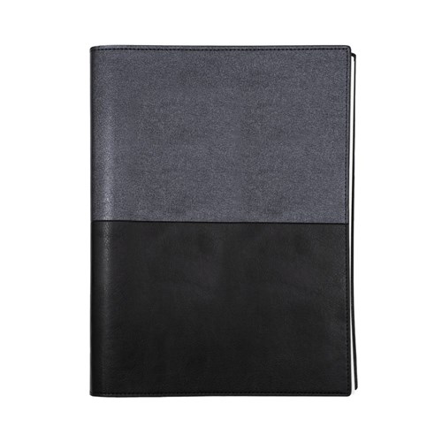Wiro binding and heavy-grained metallic and matt PU cover. Printed on a subtle cream paper. FSC Certified.