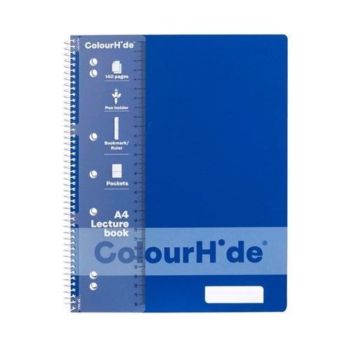ColourHide Lecture Book A4 7 Hole Punched Side Bound 140 Page Blue