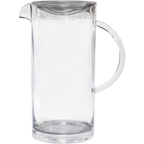 Attractive design jug with handle. Clear polycarbonate. Virtually unbreakable. Passes US FDA & EU food contact tests. Not microwave safe. Top rack dishwasher safe. Suitable for hot liquid. Volume: 2 litres. Diameter: 115mm. Height: 250mm.