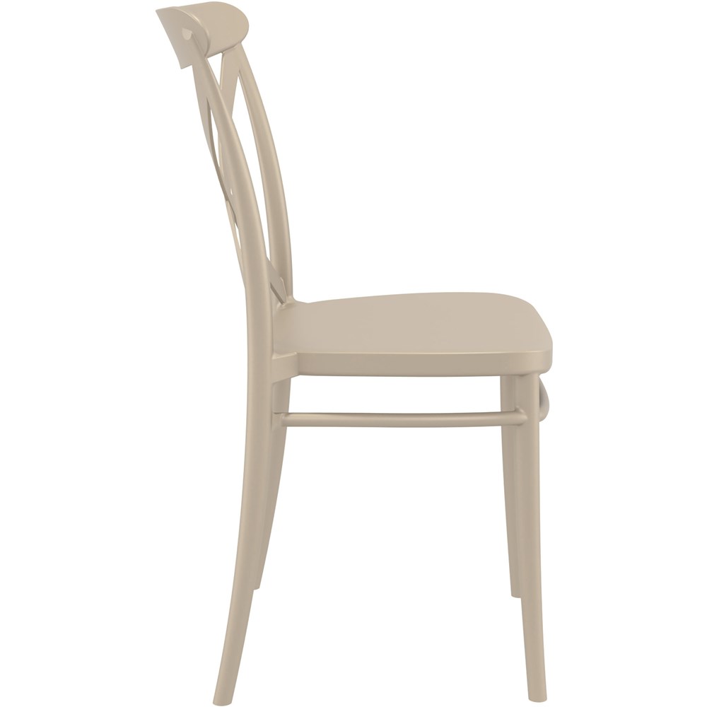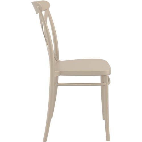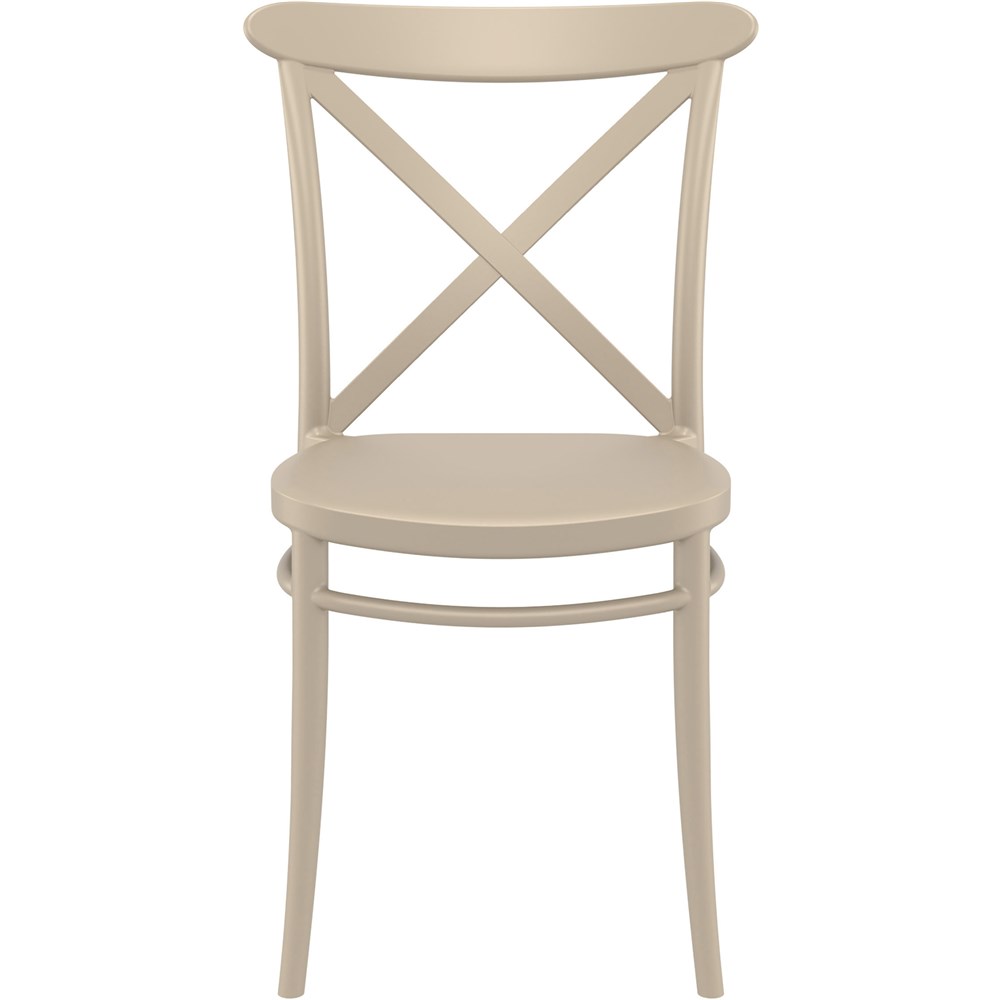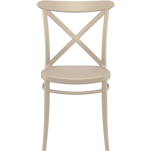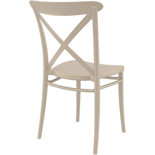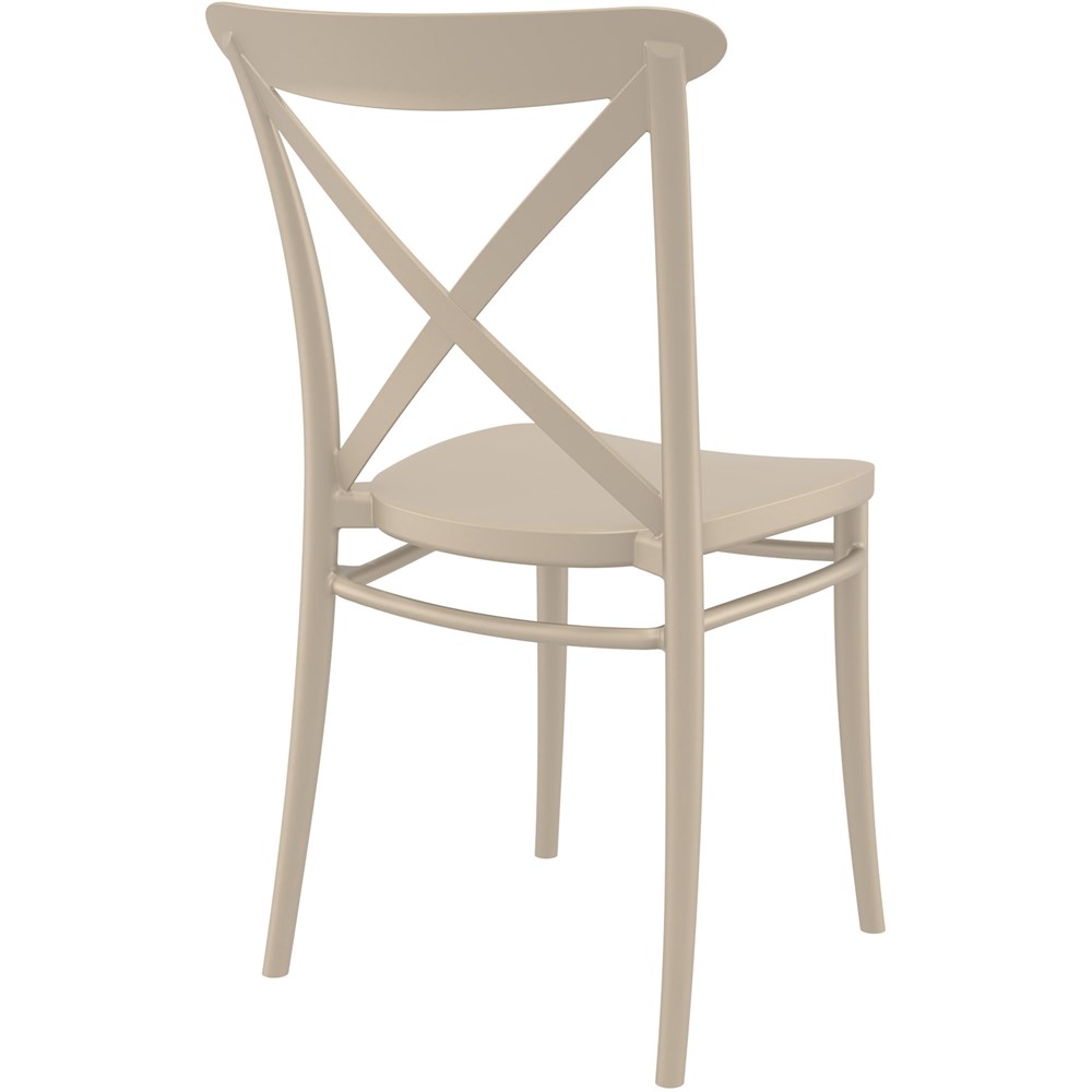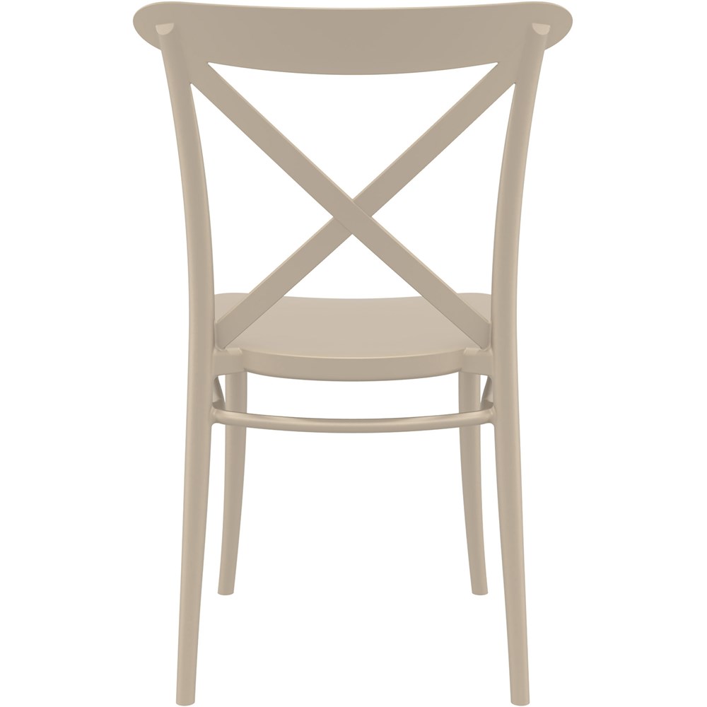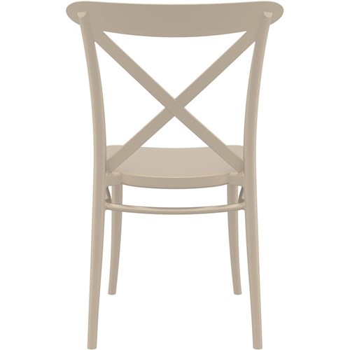 Cross Back Hospitality Dining Chair Indoor Outdoor Use Stackable Polypropylene Taupe