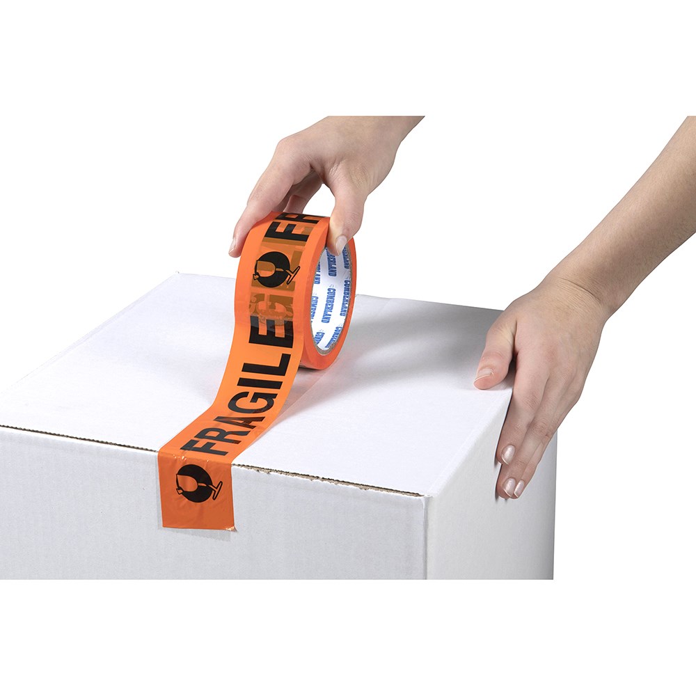 Ideal for securing and identifying delicate items during transport and handling. Economical fluoro 'FRAGILE' message tape. Sturdy 46 micron tape ensures your packages arrive securely sealed. Bright coloured message label ensures your message gets noticed. Pack of 6.