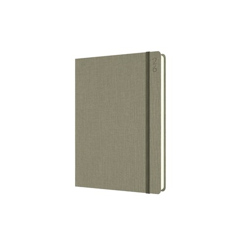 Textured fabric cover. 3 year calendars. Current and forward year planners. Appointment times 7:30am - 7:30pm, 1/2 hourly. Financial summary. International holidays. International dialling. Lay flat opening, ribbon marker and elastic closure. Size: 210 x 148mm. FSC Certified.