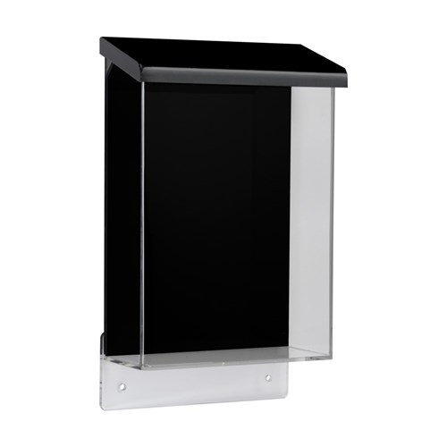 Waterproof design constructed of durable ABS and high impact polystyrene plastic Black acrylic hinged lid and back panel Keyholes and pre-drilled holes for secure wall mounting Waterproof design