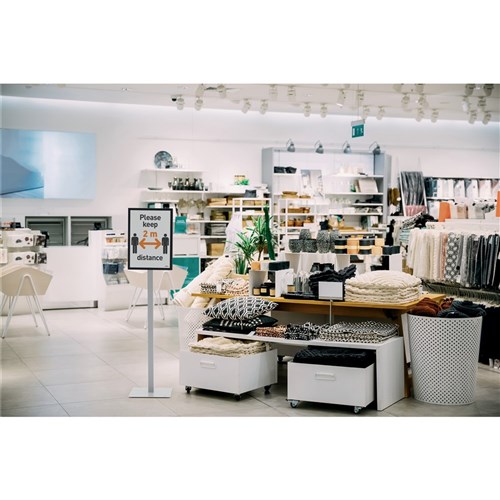 Suitable for presenting information or as a guidance system. Double sided readability. Easily change notices or signs by lifting the magnetic frame. Very stable due to the weighted base and rubber buffers. Can be used in portrait or landscape format. Easily adjustable without using tools. Ideal for reception areas, lobbies, trade fairs and waiting rooms.