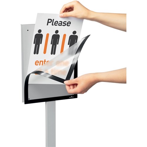 Suitable for presenting information or as a guidance system. Double sided readability. Easily change notices or signs by lifting the magnetic frame. Very stable due to the weighted base and rubber buffers. Can be used in portrait or landscape format. Easily adjustable without using tools. Ideal for reception areas, lobbies, trade fairs and waiting rooms.