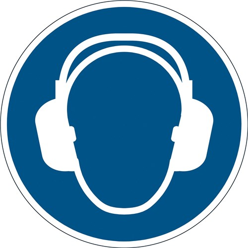 Durable Marking Sign Use Ear Protection 430mm Blue